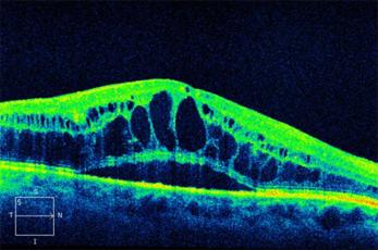 - Description: Swelling or thickening of the macula caused by fluid buildup.